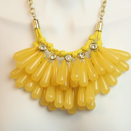 This Yellow Teardrops Bib Beaded Necklace With Gold Chain sparkling finish with this teardrop tieback bib that is guaranteed to become a favorite in your fashion jewelry collection! A Yellow Teardrops Bib Beaded Necklace With Gold Chain in a delicious hue. It would look gorgeous with a strapless dress or just to jack up a plain tee or tank.